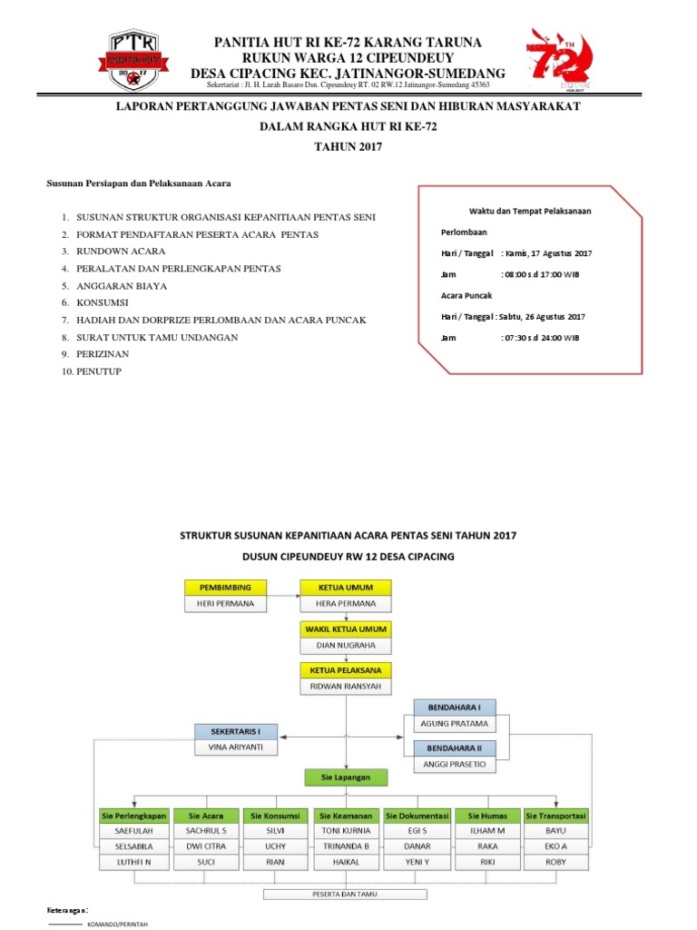 Di bawah ini adalah contoh proposal kegiatan 17 agustus karang taruna tunas muda yang ada di dusun lanteng 2 desa selopamioro kecamatan imogiri. Pada bagian ini akan disampaikan sebuah contoh surat dalam bahasa inggris yang dibuat untuk rapat perusahaan. Contoh surat undangan rapat karang taruna. Kumpulan contoh surat edaran kegiatan lomba 17 agustus hari. Contoh proposal 17 agustus karang taruna. Karang taruna merupakan organisasi pemuda tingkat wilayah. Contoh surat undangan rapat pembentukan pengurus karang taruna. Selain itu untuk pemuda biasanya ada karang taruna yang membentuk panitia tersendiri dalam panitia hari kemerdekaan 17 agustus dibentuk jauh beberapa bulan sebelum perayaan tersebut dilaksanakan. Berikut ini adalah contoh format surat undangan untuk warga di lingkungan karang taruna, bisa digunakan untuk persiapan acara 17 agustusan atau acara resmi lain, file format doc ms word bisa do download. Bisa digunakan untuk persiapan acara 17 agustusan atau acara resmi lain. Contoh surat undangan ikut lomba (invitation letter) dalam. Untuk itulah surat undangan rapat sangat diperlukan. Smp negeri 7 kebumen alamat :